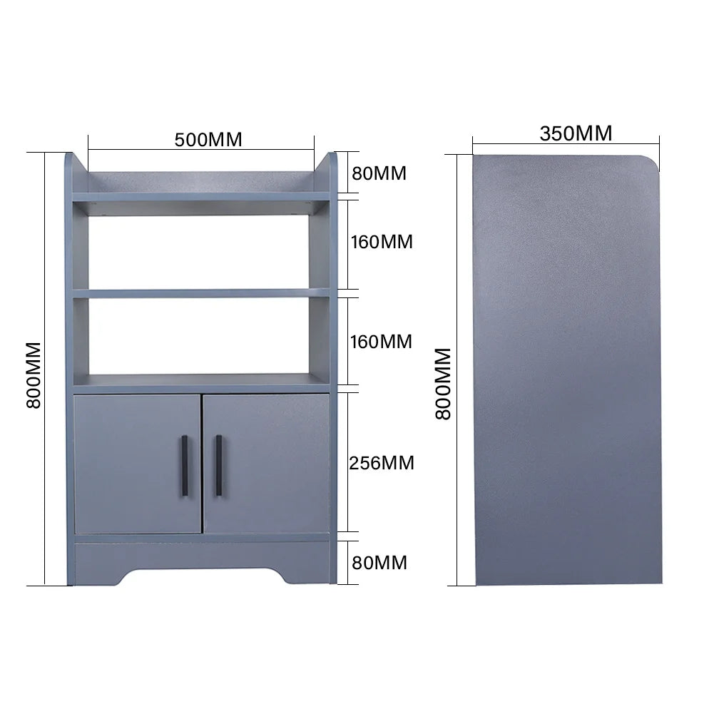 Storage: 3 Open Shelves + 2 Cabinet Doors