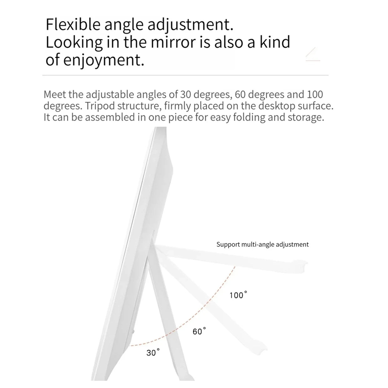 Let’s talk portability: This mirror is not only sleek and desktop-friendly, but it also folds up compactly, making it the ultimate travel companion. Toss it in your bag, and you're ready to glow on the go! Plus, with its sturdy stand, you can prop it up on any flat surface, and voilà—you’ve got your personal vanity, wherever you are.
